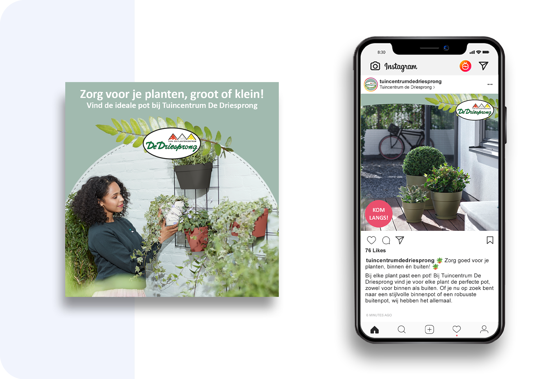 Tuincentrum De Driesprong is een familiebedrijf dat zich onderscheidt door persoonlijke service en betrokken medewerkers. Door onze samenwerking groeide het merk uit tot dé lokale bestemming voor kwaliteit, inspiratie en een gastvrije winkelbeleving.